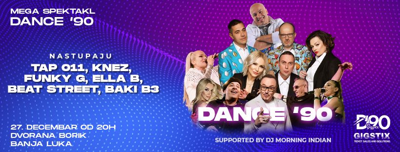 Mega Spektakl Dance 90 27.12.2025. sa početkom od 20h.